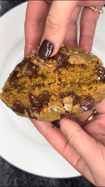 Golden and indulgent, this cookie is filled with buttery toffee that melts and sets as it bakes, creating pockets of caramelized sweetness. The texture lands perfectly between soft and chewy, with a delicate crunch in every bite.